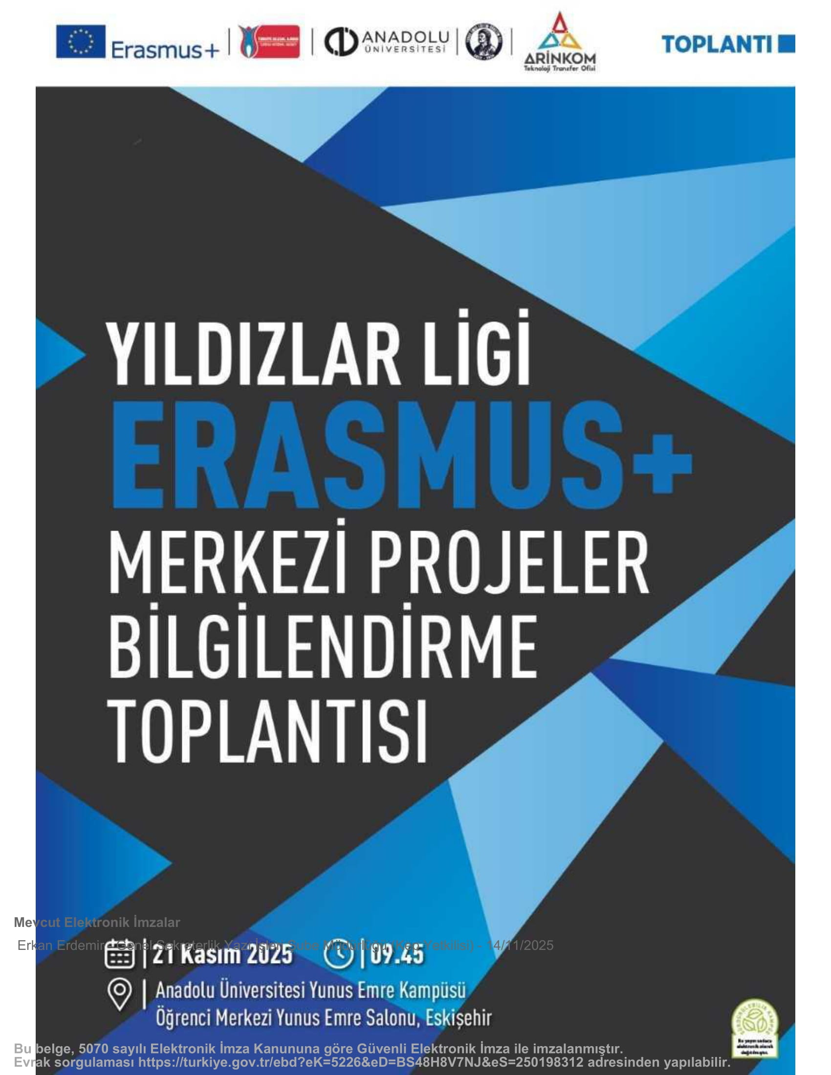 Yıldızlar Ligi Erasmus+ Merkezi Projeler Bilgilendirme Toplantısı